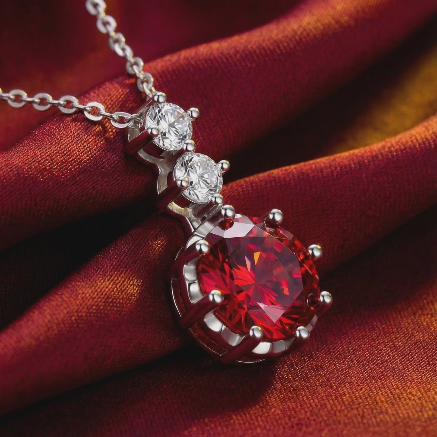 Nature rarely delivers the perfect ruby. Mined stones are often clouded with inclusions or lean towards a dull brown. This simulated ruby necklace is engineered to achieve the coveted "Pigeon Blood" red benchmark—the absolute ideal of color saturation and fire. Precision-cut for maximum light return, it offers the visual profile of a museum-grade heirloom without the scarcity tax.