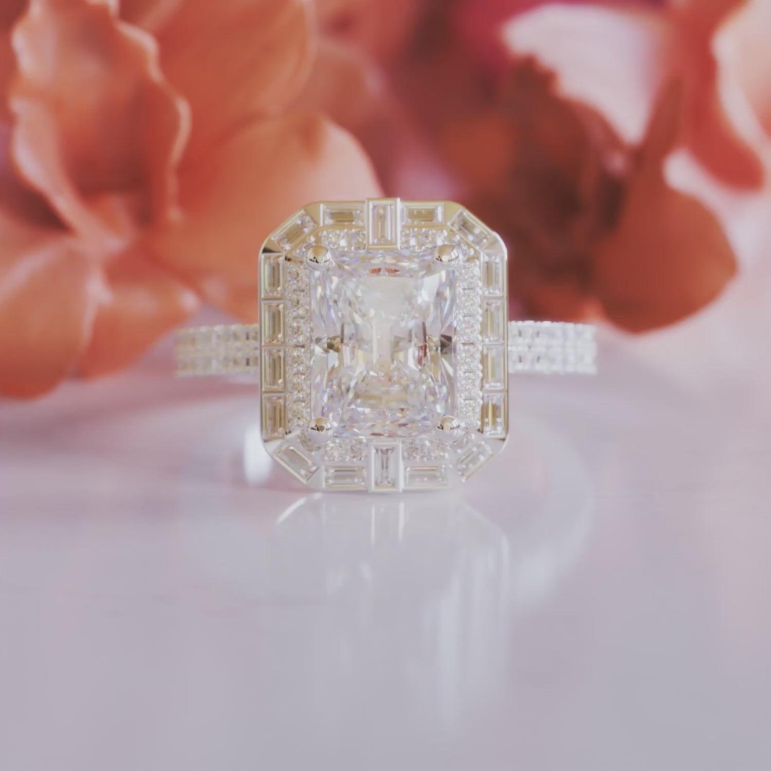 The Luminous: 3CT Radiant Cut Halo Moissanite Ring