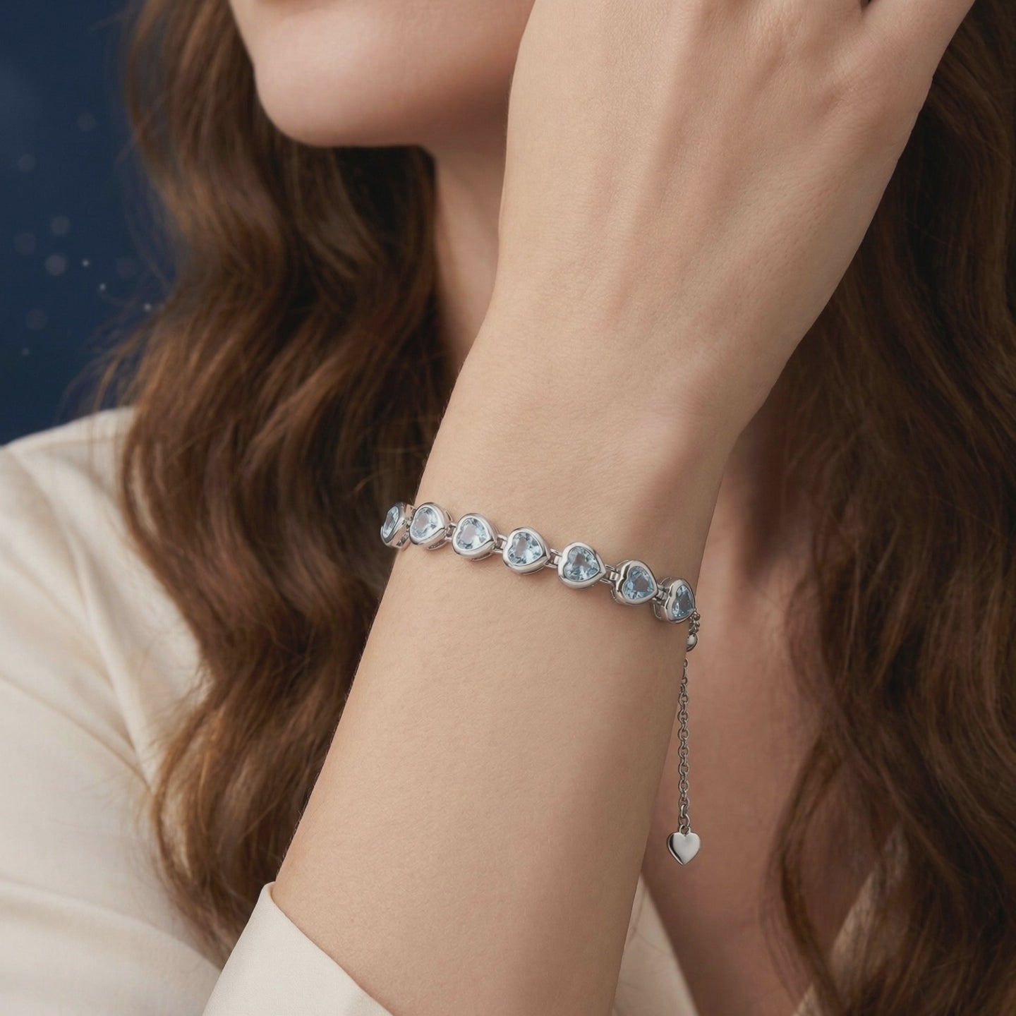 Engineered for both breathtaking beauty and daily resilience, each heart-cut topaz is secured by precision-aligned settings in a continuous band of solid, hypoallergenic S925 sterling silver. Ranking a formidable 8 on the Mohs hardness scale, these natural gemstones are highly scratch-resistant and built to withstand the beautiful chaos of your everyday life. This bracelet features a versatile 7-inch chain with a 1.7-inch extension, ensuring a flawless, adjustable fit for any wrist.
