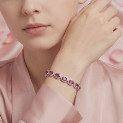Each oval stone is protected by a precision-engineered halo setting, designed to maximize light return while maintaining a low profile that resists snagging on knitwear or delicate fabrics. Constructed in Solid 925 Sterling Silver and finished with a heavy Rhodium layer, this tennis bracelet is built for the grind of daily life—resisting tarnish and maintaining its fire even through hand washing and daily activity.