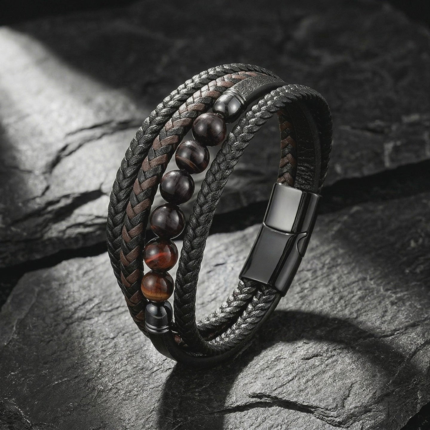 Men's jewelry is broken. You either get cheap materials that fail or luxury brands charging a massive markup for the exact same metals. We built the opposite. The Maverick Leather Bracelet integrates a multi-strand braided leather profile with Swiss Watchmaker Grade 316L stainless steel accents. Understated engineering designed for how men actually live.