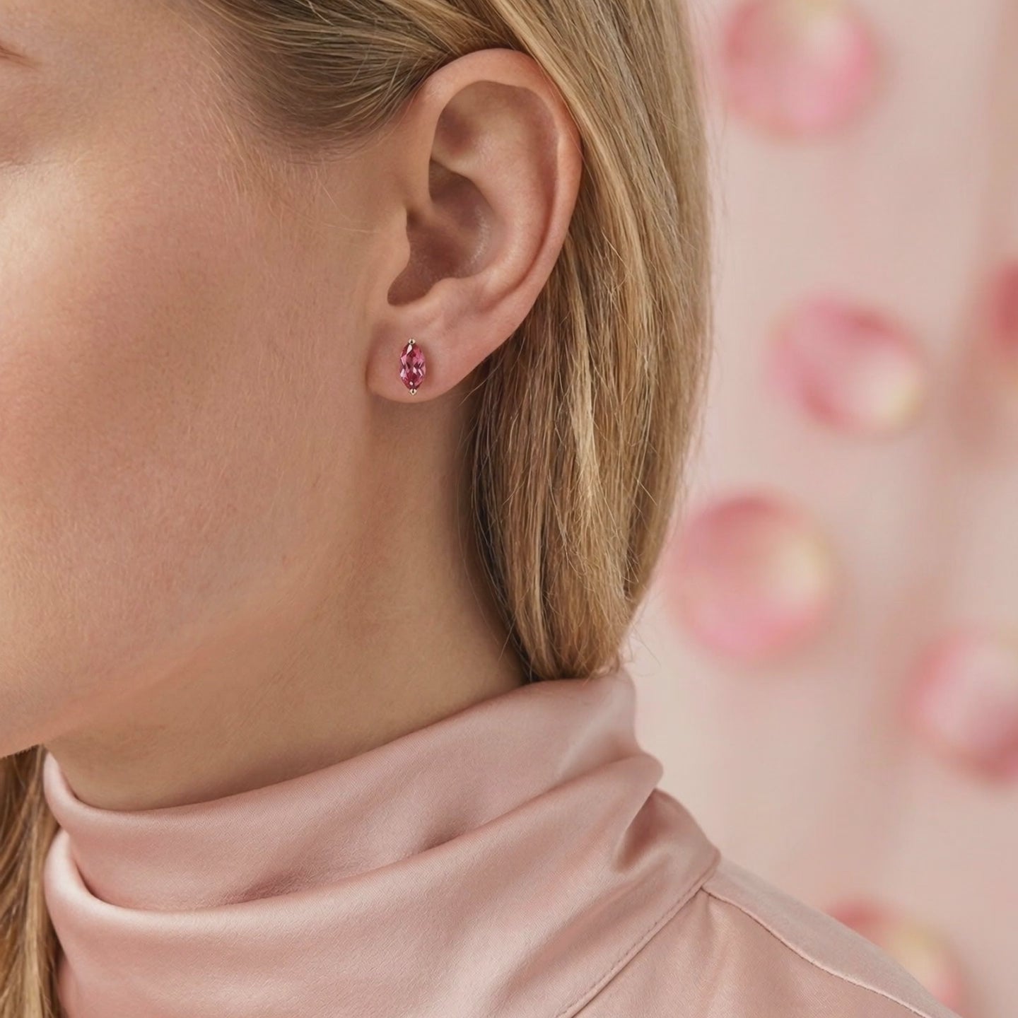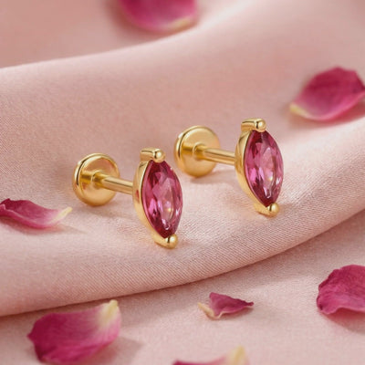 Mined pink tourmaline is often plagued by heavy inclusions and inconsistent muddy tones. The Myrellis Marquise features Simulated Pink Tourmaline, color-calibrated to achieve a deep raspberry brilliance that nature rarely delivers. Every stone is precision-cut to maximize light return, ensuring these earrings maintain their vivid fire from every angle.
