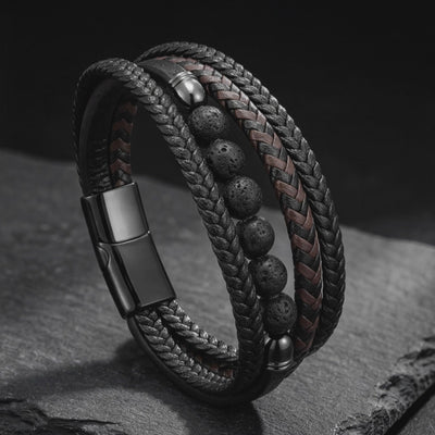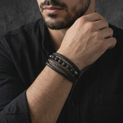 Men's jewelry is broken. Two options exist: cheap pieces that fail in months, or luxury brands charging ten times more for the identical materials. We started with engineering, not margins. The Outrider Leather Bracelet pairs premium 15mm braided black leather with Swiss Watchmaker Grade 316L stainless steel hardware. The result is a substantial, masculine bracelet engineered to outlast trends and decades of daily use.