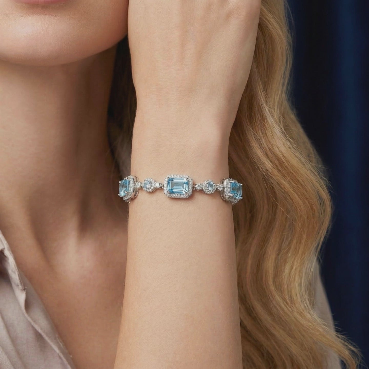 You don't need an occasion to wear an extraordinary masterpiece; you just need the right gemstones. Meet your new signature piece. This bracelet features six substantial 6x8mm natural topaz stones, expertly faceted in a classic emerald cut.