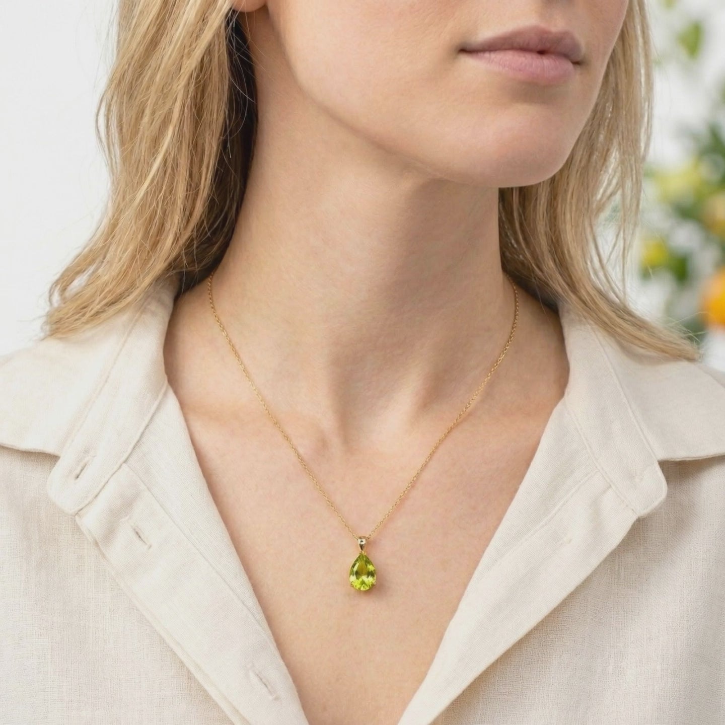 Mined peridot often carries internal inclusions that cloud its natural yellow-green fire. This necklace features an Engineered Peridot, precision-cut from A5 Grade material to achieve the ideal "evening emerald" saturation. It provides the visual impact of a flawless heirloom stone without the scarcity tax of mined alternatives.