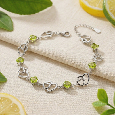 Constructed for the daily grind, this bracelet features alternating heart-shaped links and vibrant stones set in Solid 925 Sterling Silver. Finished with a thick layer of Rhodium for platinum-family durability, it resists tarnish from hand sanitizer and daily wear. The low-profile setting protects the stones from impact while ensuring the piece won't snag on knitwear or delicate fabrics.