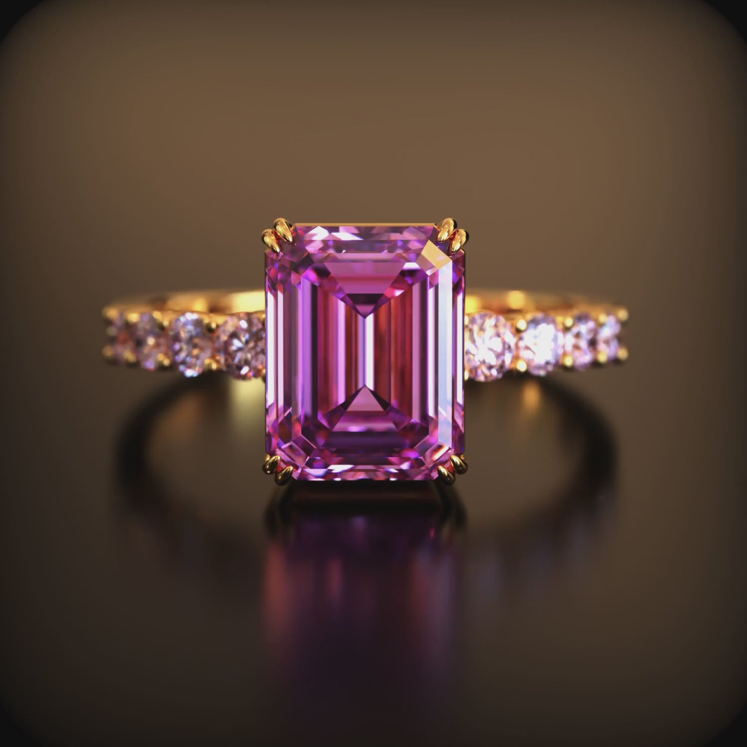 The Bella Jewel 3CT Emerald Cut Red Moissanite Ring