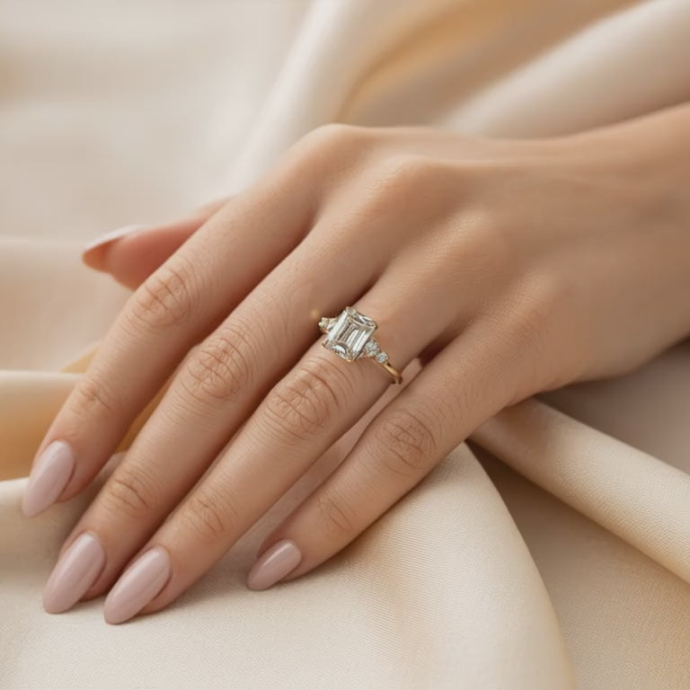 The Adelina Rae 3CT Emerald Cut Moissanite Ring AanbiedingsprijsVan £302.95 Normale prijs£605.95