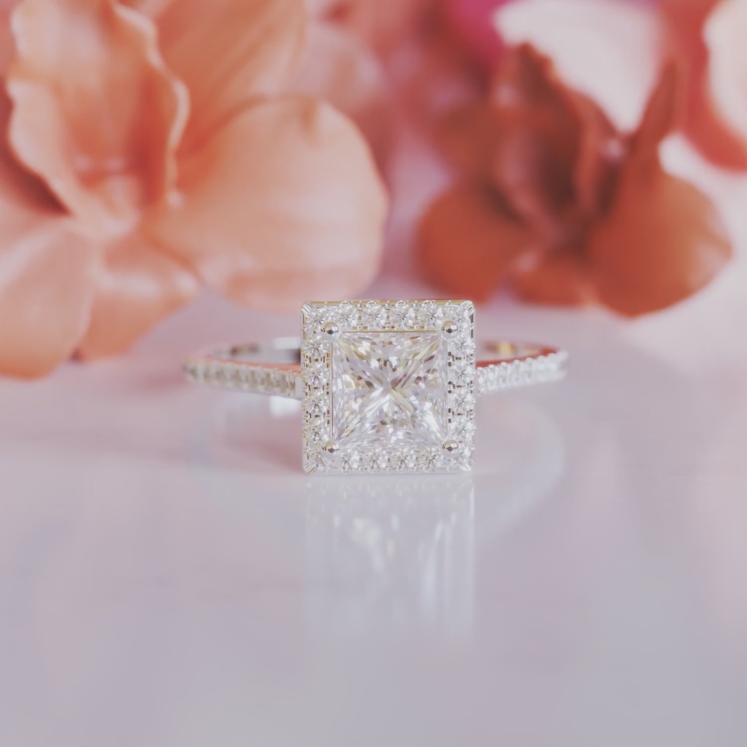 - CT Size: De Aryan is voorzien van een 1CT Princess Cut Moissanite met gesimuleerde diamanten in een prachtige halo. We accepteren aangepaste verzoeken als u een andere CT-grootte wenst. Bekijk de bovenstaande details voor specifieke informatie over deze ring.