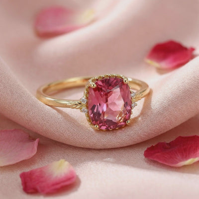 - Stone: Cushion Cut Simulated Pink Tourmaline (A5 Grade)