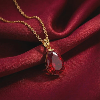 Mined rubies are notoriously inconsistent, often appearing cloudy or containing brown undertones. This July birthstone necklace features a Pear Cut Simulated Ruby, engineered to hit the exact Pigeon Blood red benchmark sought by collectors. Color-calibrated for maximum saturation and flawless clarity, it delivers the high-impact visual of a museum-grade stone without the scarcity tax.