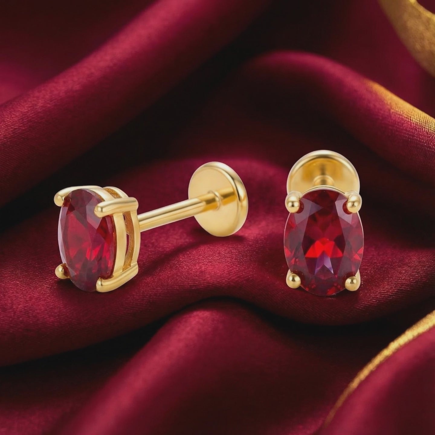 Nature is random; engineering is precise. Mined rubies are frequently cloudy or contain brown undertones. We engineered these earrings to match the coveted "Pigeon Blood" red benchmark, ensuring every stone has flawless saturation and intense fire.
