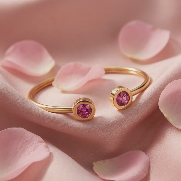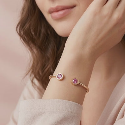 Nature rarely delivers the perfect saturation of October's birthstone. We engineered it. This cuff bracelet features two precision-cut simulated pink tourmalines, color-calibrated to achieve a vivid raspberry brilliance and exceptional clarity that mined stones often lack. It offers the museum-grade look of high-end heritage jewelry without the scarcity tax.