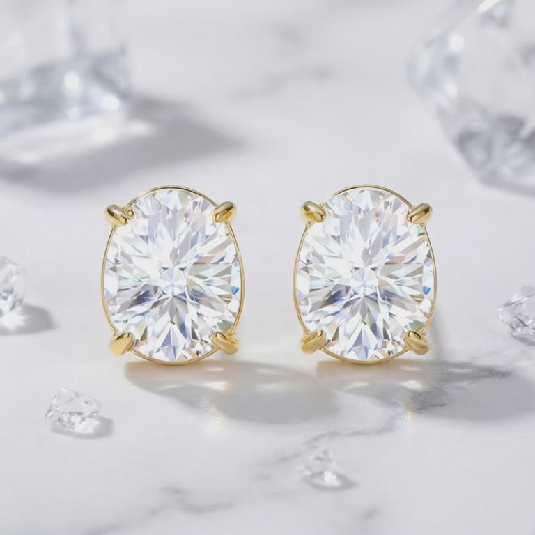 Mined diamonds are often celebrated for their brilliance, but our premium simulated diamond offers a flawless alternative. With precision cutting technology, these oval studs capture and reflect light with exceptional clarity, delivering a superior sparkle that rivals the real thing. For the April birthstone, we chose an oval cut to maximize surface area and brilliance, providing the high-impact look of a multi-carat heirloom.