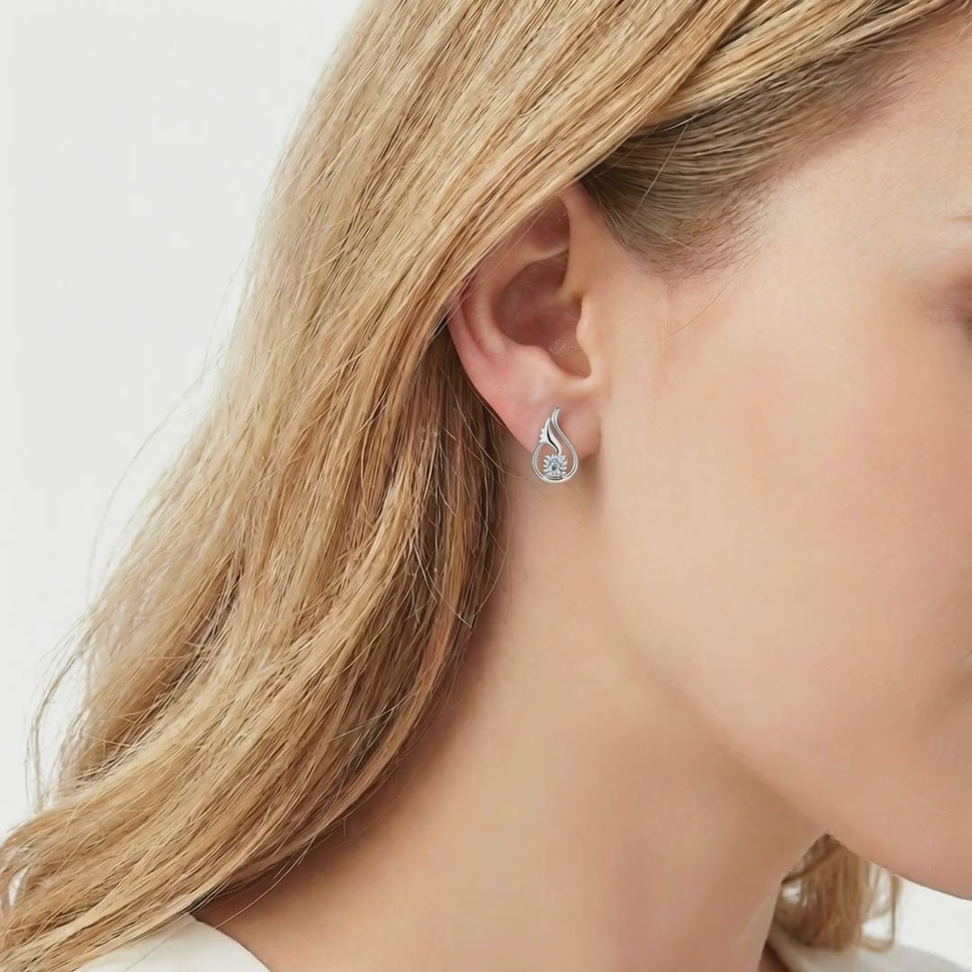 These April birthstone earrings feature a precision-cut Zirconia stone set in a unique tulip-inspired bud design. Faceted to catch every ray of light, this diamond simulant offers the classic clarity and sparkle associated with April's gem, delivering a luxurious look for daily wear.