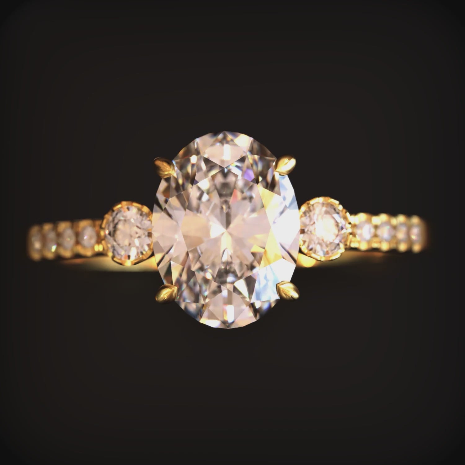 - Setting Type: Prong Setting with Pavé Band and Side Stones – Maximizing light and sparkle.