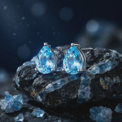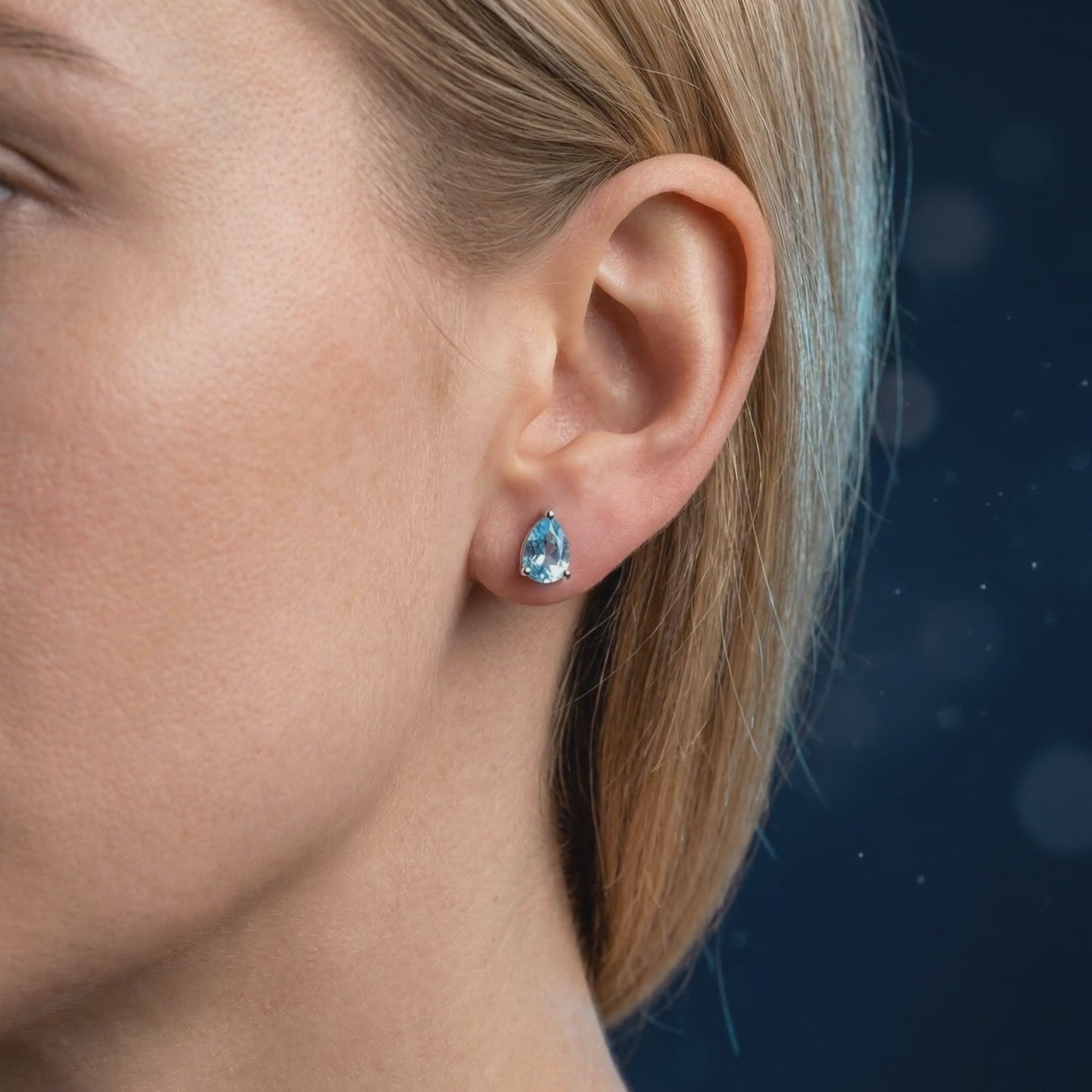 You don't need an occasion to wear an extraordinary masterpiece; you just need the right stone. Meet your new everyday signature. These beautifully proportioned earrings feature a precisely matched pair of 4x6mm natural topaz stones, expertly faceted in a classic pear cut. Because natural topaz possesses exceptional, eye-clean transparency, our lapidaries precisely align every facet to allow light to travel deeply into the crystal, refracting a vivid, electric blue hue that demands attention across the room.