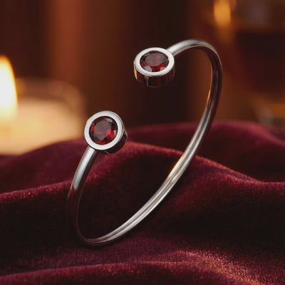 Mined garnets often carry cloudy inclusions that dull their natural fire. We engineered the solution. This January birthstone bracelet features precision-cut Simulated Garnet, color-calibrated to a deep, museum-grade red. Every stone is selected for VVS-level clarity and optical performance that nature rarely achieves consistently.