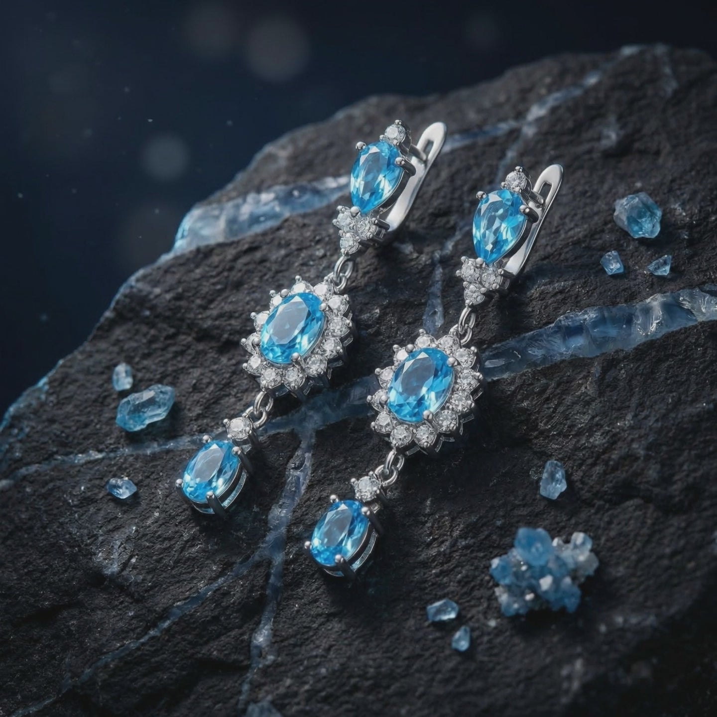 You don't need an occasion to wear an extraordinary masterpiece. Meet your new signature earrings. Showcasing a cascading arrangement of precision-cut Swiss Blue Topaz, these drop earrings feature a breathtaking combination of 5x7mm pear and oval cuts. Because natural topaz possesses exceptional, eye-clean transparency, our lapidaries expertly facet each stone to allow light to travel deeply, refracting a vivid, electric blue hue that commands attention from across the room.