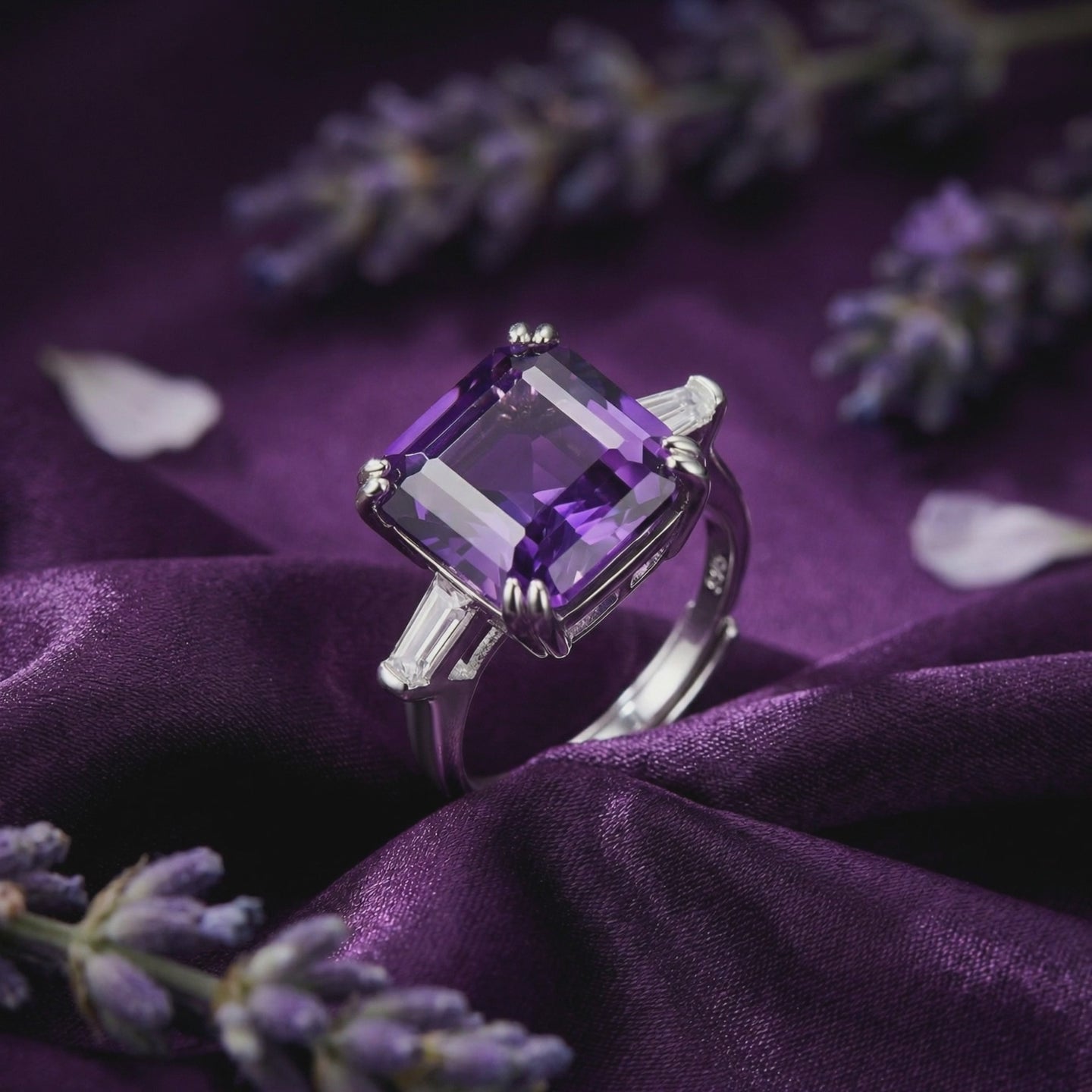 • Gemstone: 100% Natural Amethyst (11x11mm Square Cut)