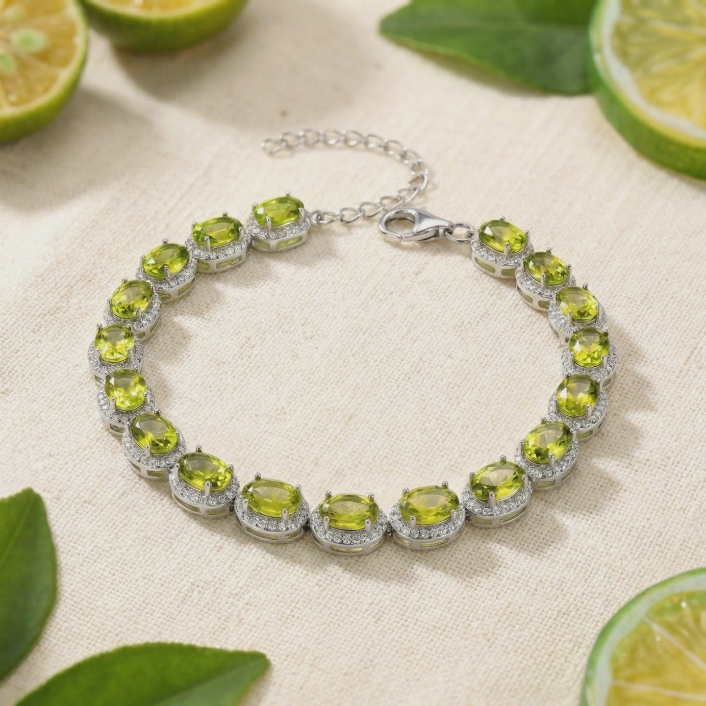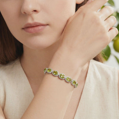 Mined peridots are notorious for inconsistent olive tones and internal inclusions that kill the light. This is Simulated Peridot, engineered to match the vibrant yellow-green brilliance of the world's finest museum-grade specimens. We don't rely on the luck of the mine; we rely on precision color-calibration to ensure every stone in this bracelet delivers a flawless, lively glow.