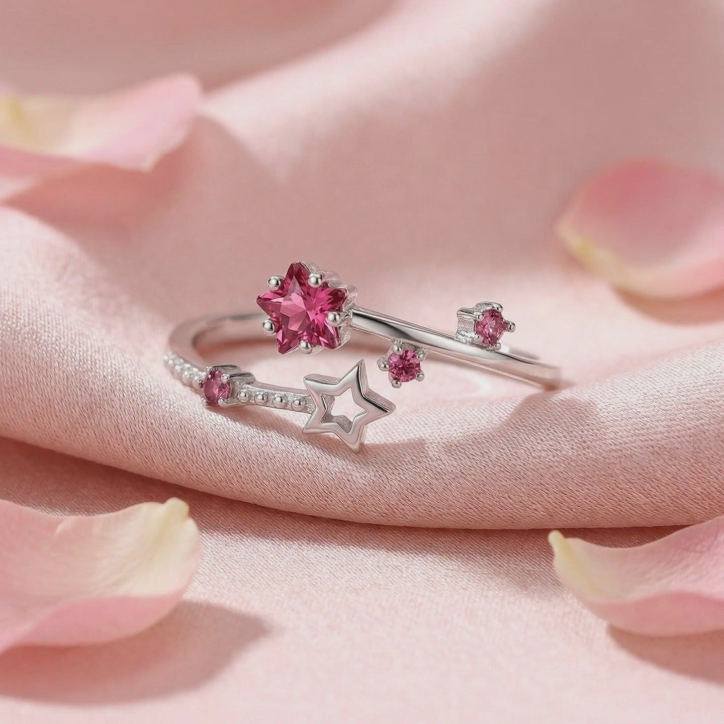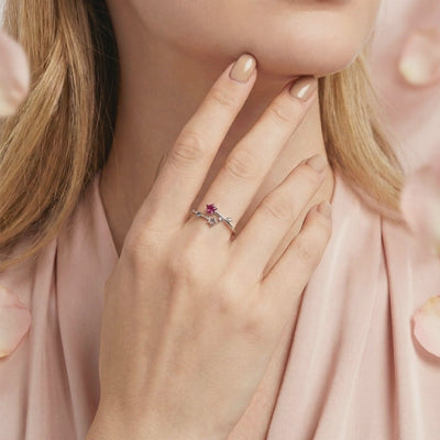Mined tourmalines often suffer from inclusions and inconsistent color. This October birthstone ring features Simulated Pink Tourmaline, color-calibrated to achieve a vivid raspberry brilliance and exceptional clarity that nature rarely delivers. Every stone is precision-cut to maximize light return and fire.