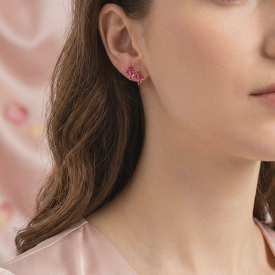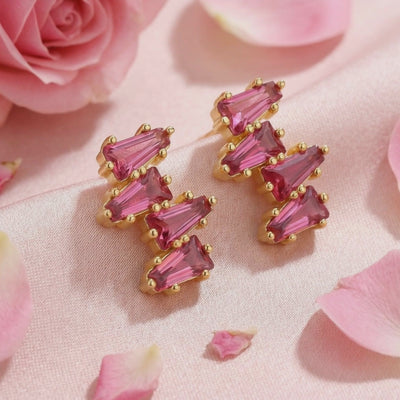 Front view of Thalissa Cascade gold vermeil earrings with staggered pink tourmaline baguette stones.