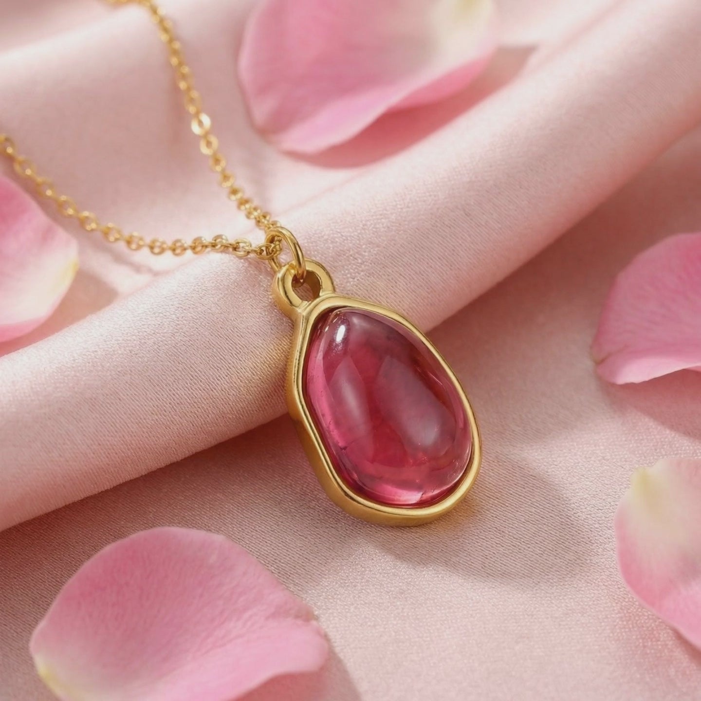 Mined pink tourmaline is frequently marred by inclusions and dullness. This necklace features a Simulated Pink Tourmaline engineered to achieve a vivid raspberry brilliance with exceptional clarity. Precision-cut into a teardrop shape from A5 Grade material, it is designed for maximum light return and color saturation that nature rarely produces consistently.