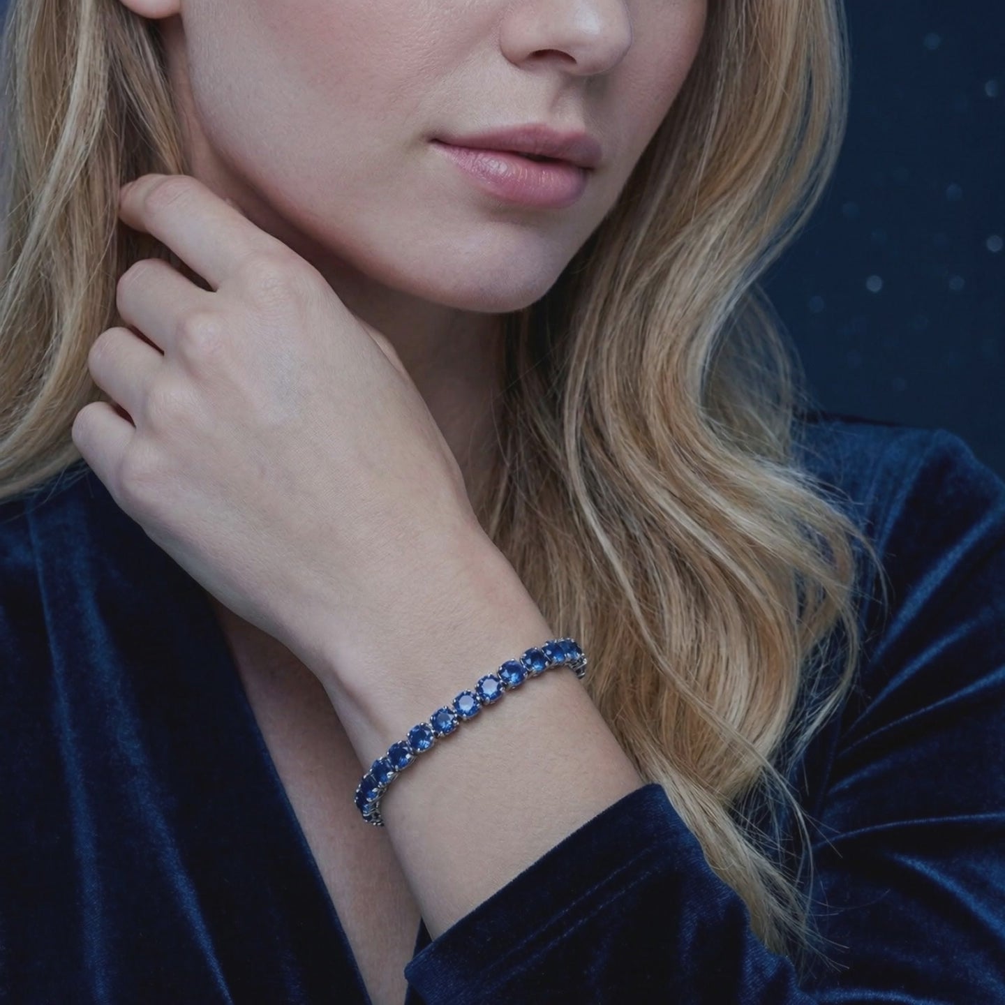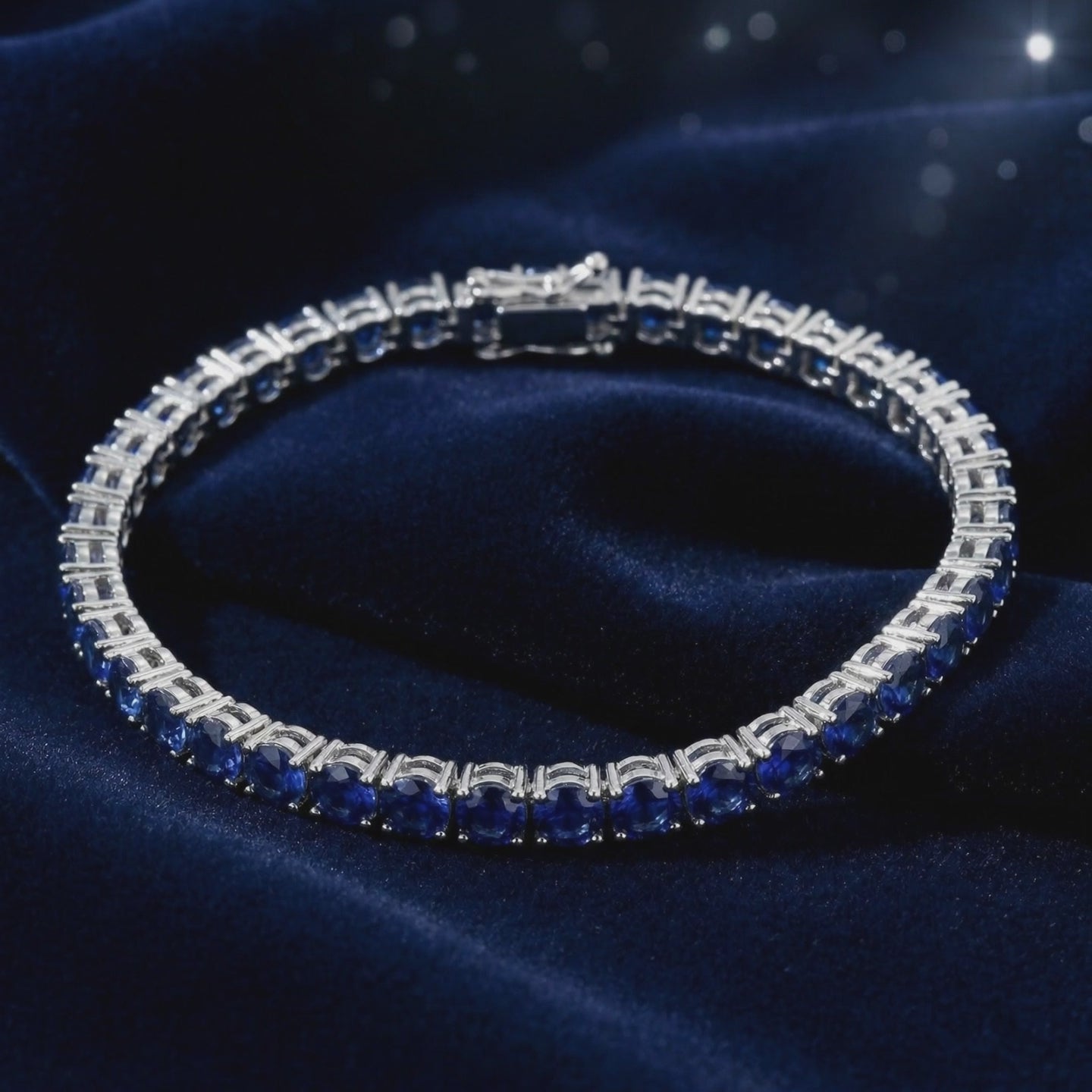A mined bracelet requires matching dozens of stones by hand—a process that costs thousands and often results in inconsistent clarity. We engineered the uniformity. This September Birthstone tennis bracelet features Simulated Sapphires color-calibrated for a consistent, deep Royal Blue. No pale stones. No dark stones. Just perfect saturation in every link.