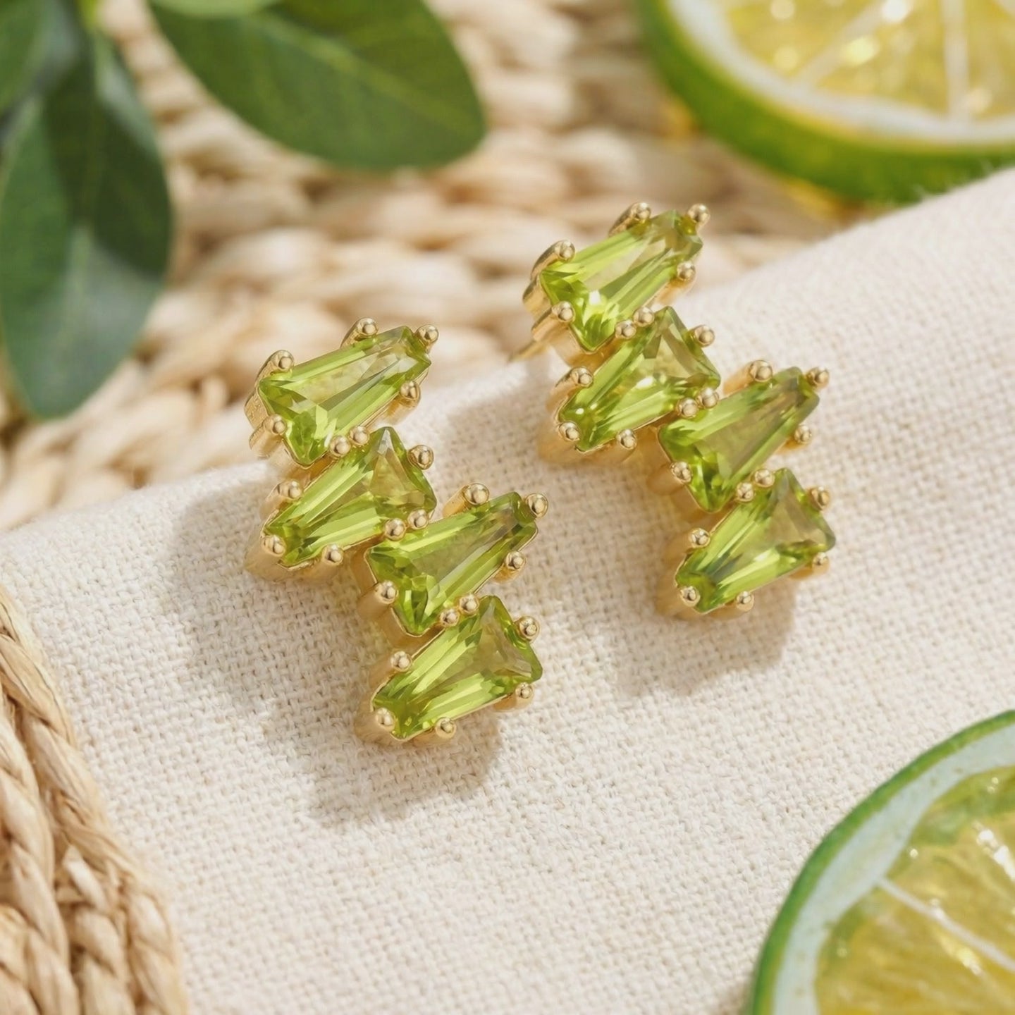Mined peridots are notoriously difficult to find with consistent saturation; they often appear murky or yellow-brown. These vine cluster earrings feature Simulated Peridot, engineered to match the coveted vibrant yellow-green benchmark with lively brilliance and museum-grade clarity. Each stone is precision-cut from A5 Grade material to ensure maximum light return and a professional finish.