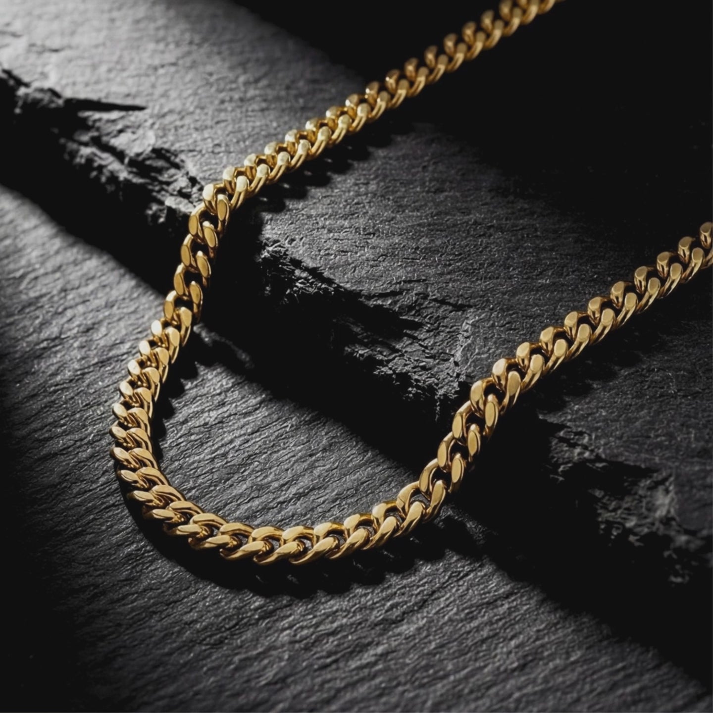 This gold 4mm Cuban chain necklace is your new everyday essential. Crafted from Swiss watchmaker steel, it's built to last without the luxury markup. Wear it with confidence, knowing it's waterproof and won't tarnish, unlike cheaper alternatives.