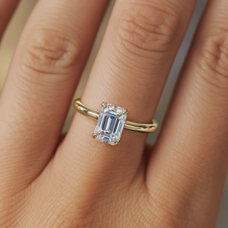What outsparkles any diamond? The Adelina Rae Emerald Cut Moissanite Solitaire Ring. Say hello to The Adelina Rae, a ring that radiates light outsparkling even the finest diamonds. This is classic elegance that never goes out of style, where the breathtaking 2CT emerald-cut moissanite takes center stage, capturing the light like no other. This ring is both luxurious and affordable, designed to turn heads and invite admiration, offering a refined sparkle that speaks of understated sophistication.