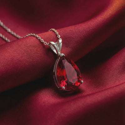 Mined rubies are rarely perfect. Nature often leaves them cloudy, fractured, or with an undesirable brownish tint. This July birthstone necklace features an engineered stone calibrated to the coveted "Pigeon Blood" red benchmark. Precision-cut in a sophisticated pear shape, it delivers flawless saturation that stays vibrant in any lighting.