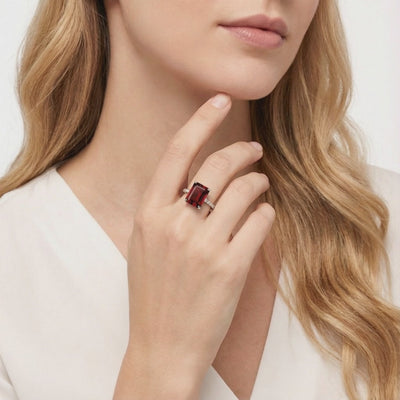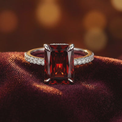 Nature is inconsistent; engineering is precise. This January birthstone ring features a museum-grade Simulated Garnet, color-calibrated to the absolute ideal. We have replicated the deep, intense wine-red saturation of a flawless garnet without the common inclusions or the scarcity markup found in mined stones.