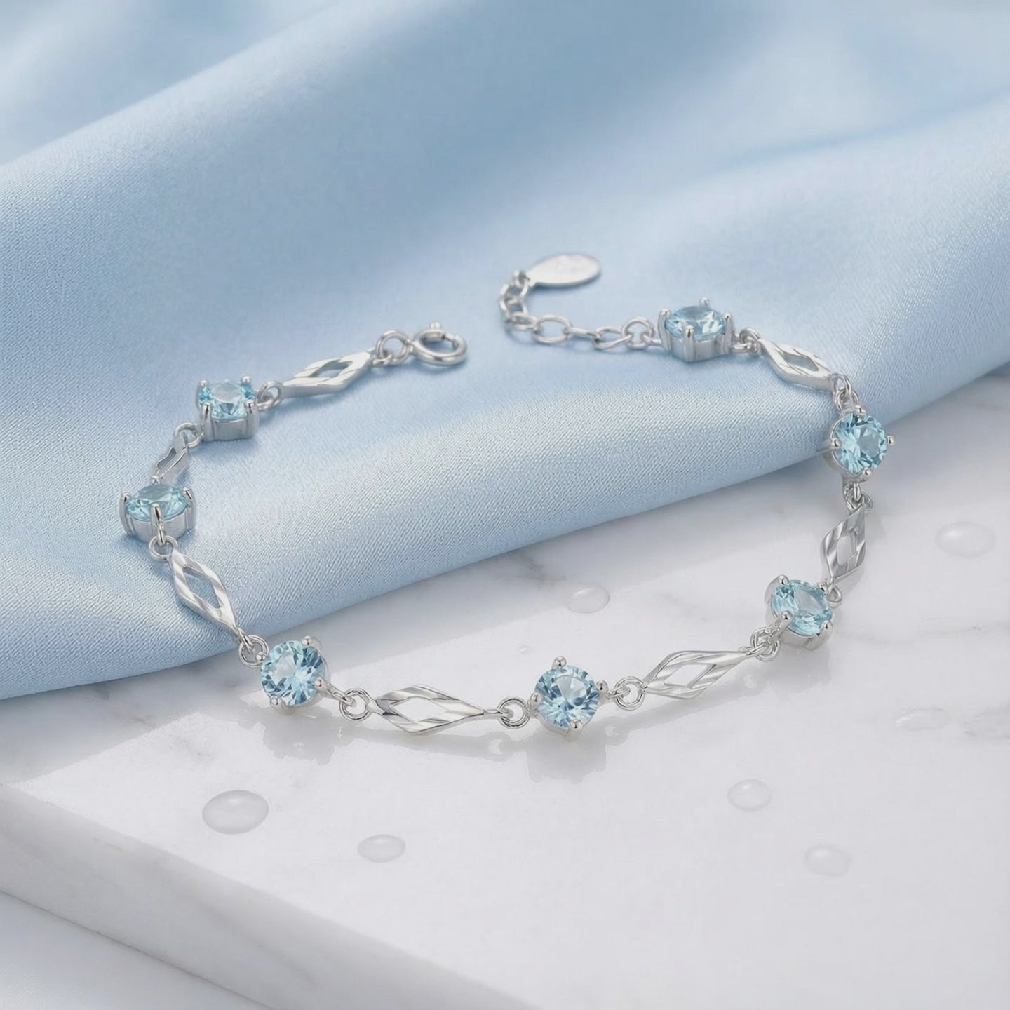 - Stone: A5-Grade Simulated Aquamarine (March Birthstone)