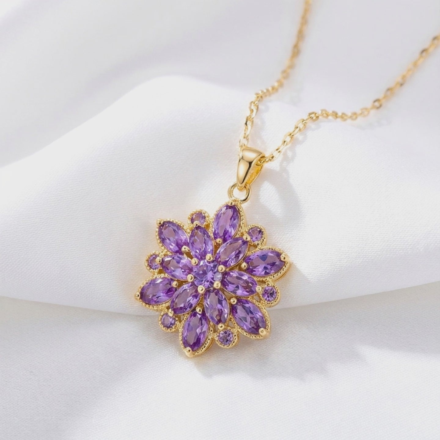 Mined amethysts often suffer from uneven color and visible inclusions. This is Simulated Amethyst, engineered to capture the ideal "Royal Purple" saturation nature rarely achieves. Every facet of this necklace is precision-cut from A5 Grade material for maximum light return and brilliance.