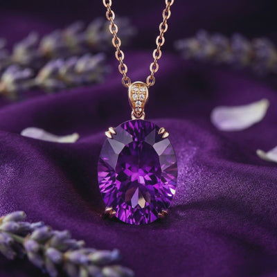 Designed as a true legacy piece, the gemstone is cradled in Solid 18k Rose Gold—a warm, romantic metal that perfectly complements the cool purple tones of the amethyst. The bail is accented with 6 sparkling simulated diamonds, adding a halo of fire to the deep serenity of the center stone. Unlike mass-market jewelry, this is an investment in authenticity and craftsmanship that you can feel the moment you put it on.