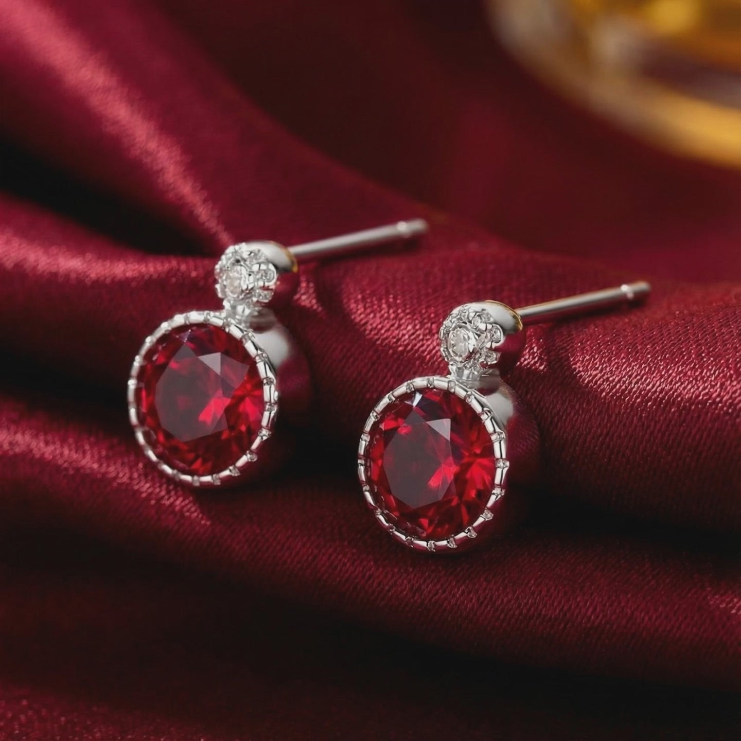 Mined rubies are rarely perfect; they are often cloudy or lean toward brownish hues. These earrings feature Simulated Ruby, engineered to match the coveted "Pigeon Blood" red benchmark with deep saturation and intense fire. Precision-cut from A5 Grade material, every facet is calibrated for maximum light return and optical clarity.