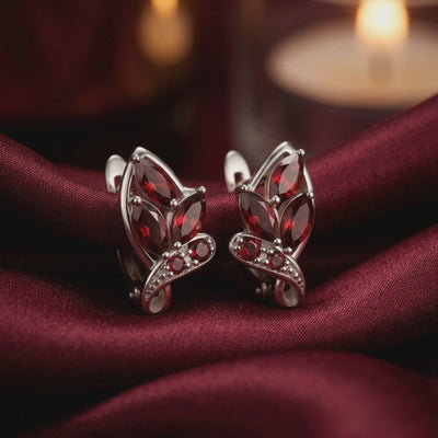 At the heart of this design rests a breathtaking cluster of 100% natural garnets. Forged over millions of years deep within the earth, these premium gemstones have been precision-cut into flawless marquise and round shapes to maximize their light refraction. The result is a dynamic, concentrated glow—a deep, smoldering burgundy in the evening, and a vibrant, passionate crimson under the sun.