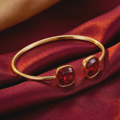Built for the real world, the cuff is forged from high-grade stainless steel with a gold-tone finish. It is designed to resist tarnish and maintain its brilliance through daily wear. The open-bypass setting protects the stones while ensuring a comfortable, flexible fit for any wrist.