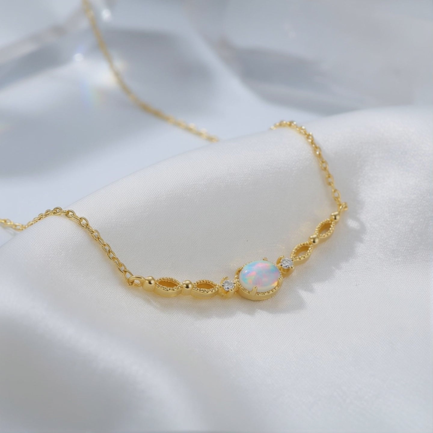 - Mindful Care: To preserve your opal's unique fire, simply remove your necklace before showering, swimming, or applying perfumes.