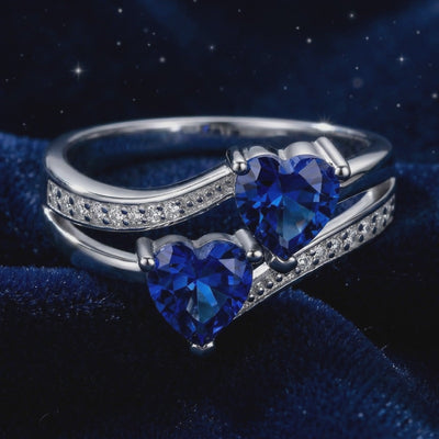Nature is random; engineering is precise. Mined sapphires are often clouded by inclusions or vary wildly in shade. This September birthstone ring features two heart-cut Simulated Sapphires, color-calibrated to match the ideal deep royal blue with velvety saturation found in museum-grade specimens. We don't settle for "good enough"—we replicate the absolute peak of visual physics.