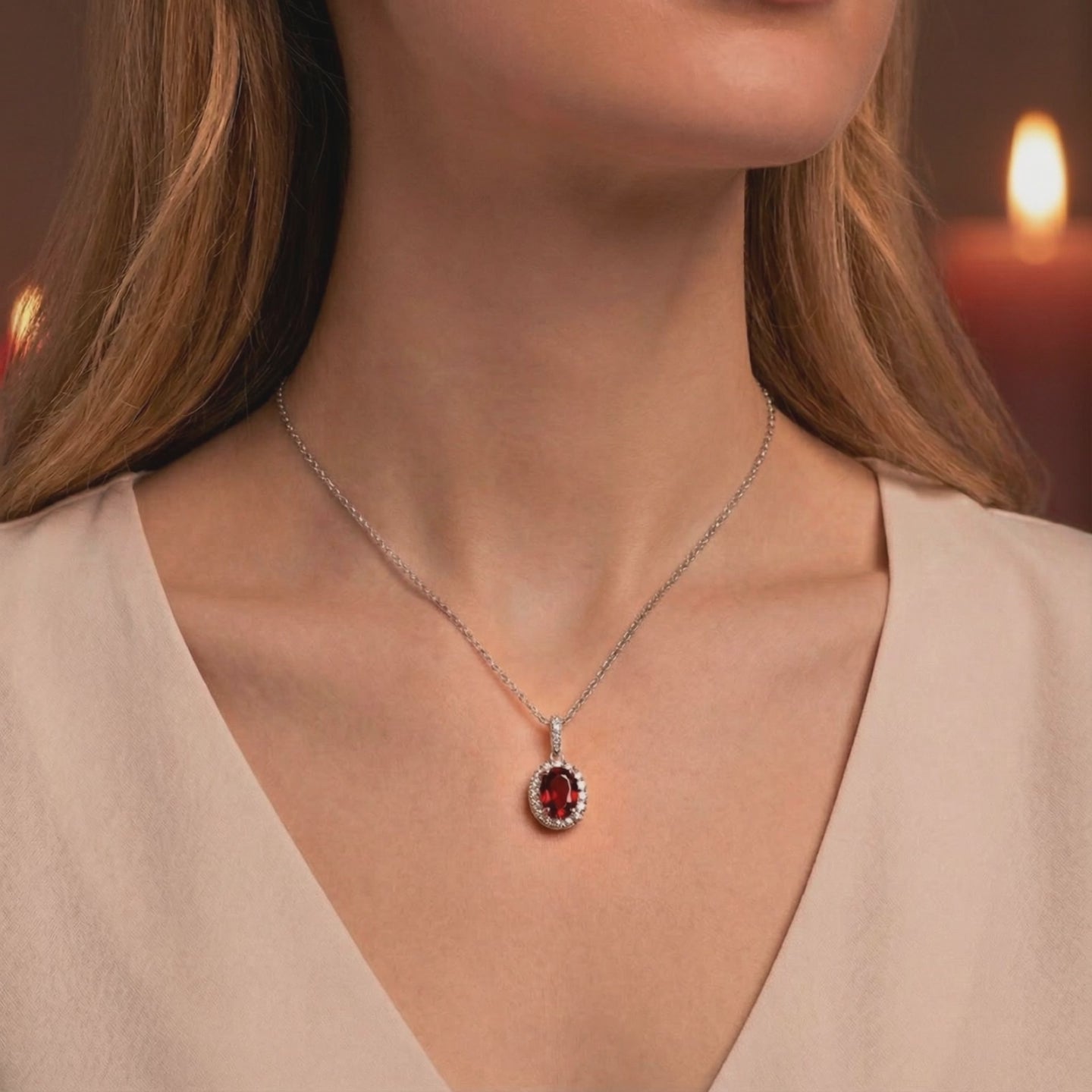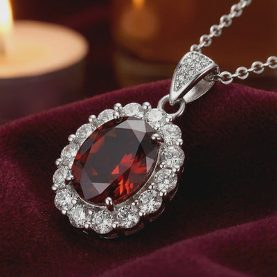Mined garnets often carry muddy brown undertones or visible inclusions that dull their natural fire. This January birthstone necklace is engineered to match the coveted "African Garnet" benchmark—a deep, fiery red that remains vibrant and saturated even in low-light settings. Precision-cut for maximum refractive index, the center stone captures light more efficiently than its mined counterparts.