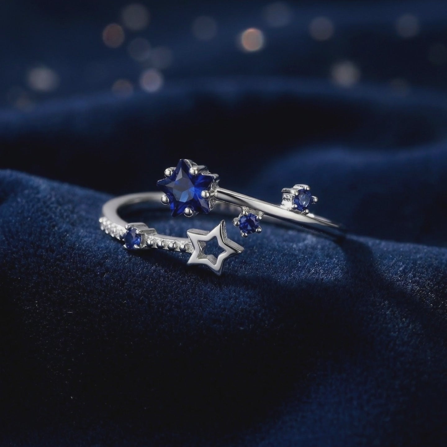 Nature is often random, but engineering is precise. This September birthstone ring features Simulated Sapphire, color-calibrated to achieve the velvety saturation of museum-grade 'Royal Blue' stones. The star-themed bypass design is crafted for those who prioritize optical performance and visual physics over marketing markups.