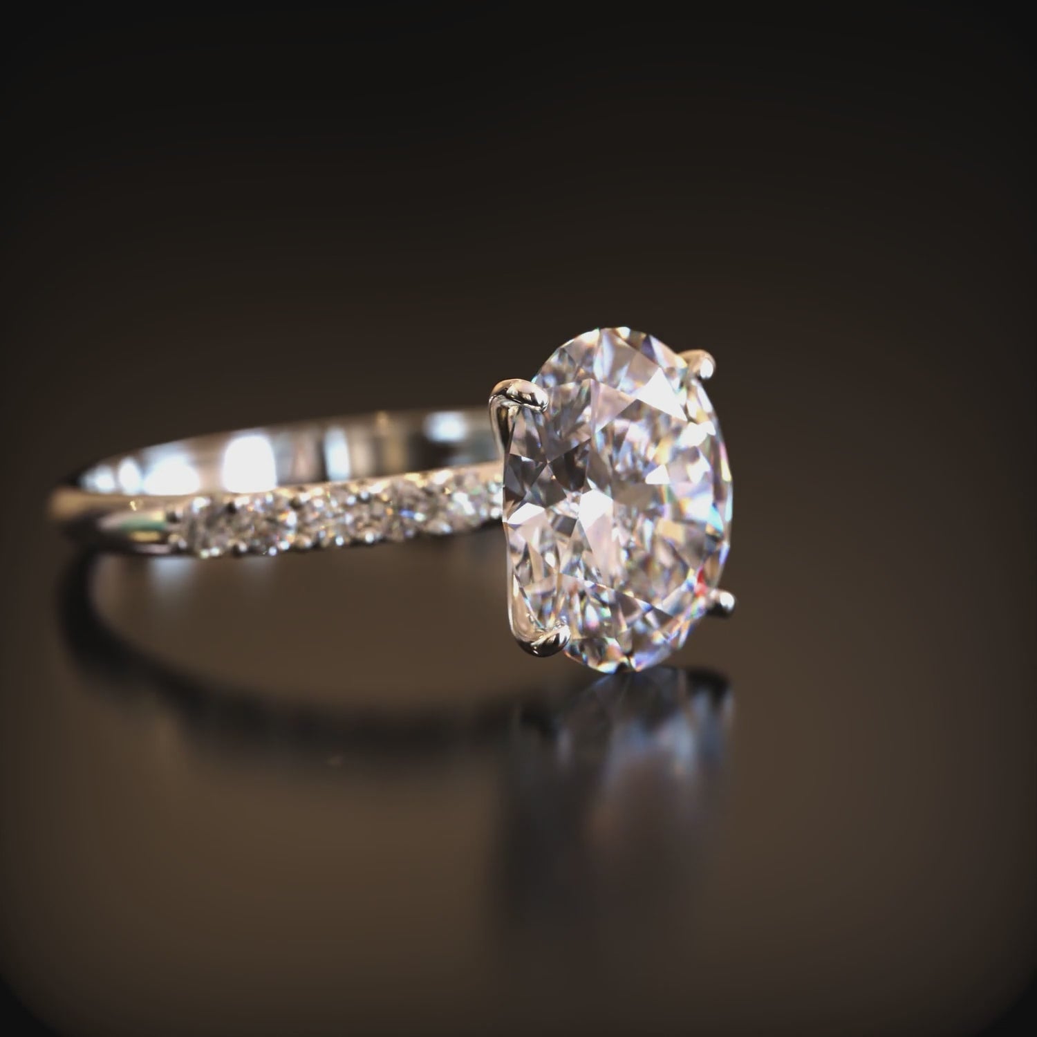 The Ornella is a gorgeous oval moissanite that sparkles so much that it'll make diamonds jealous.