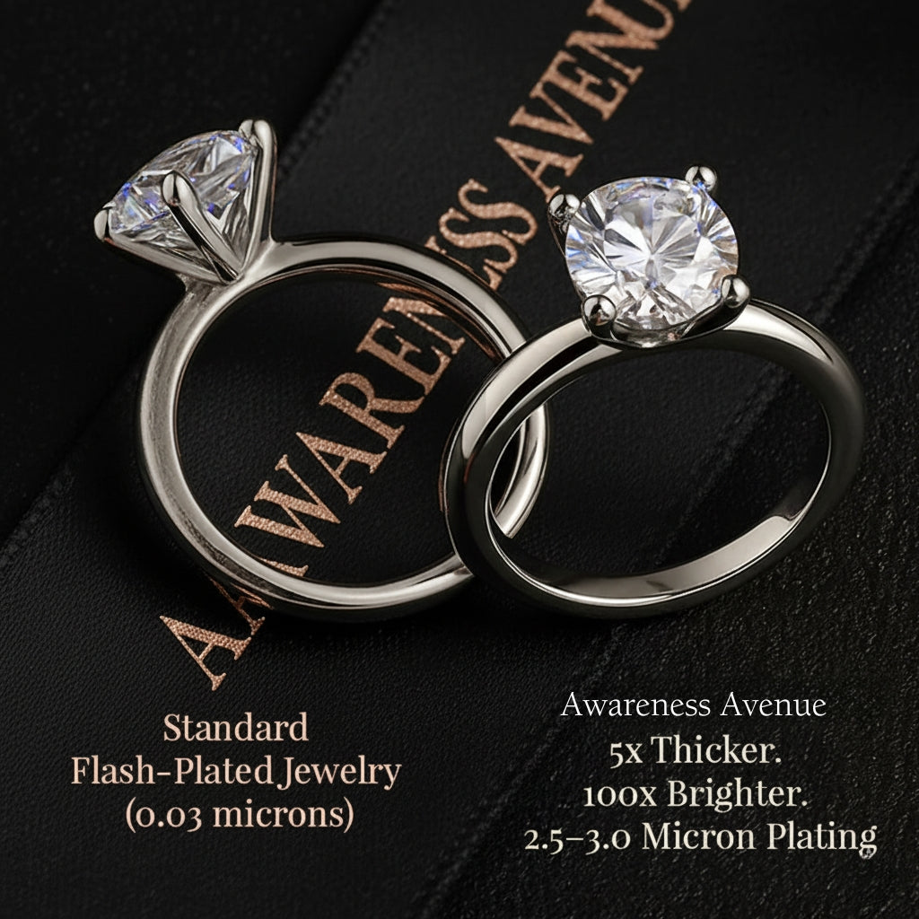 Engineered with 4 layers of platinum over recycled S925 sterling silver, Awareness Avenue's 2.5–3.0 micron finish outshines and outlasts ordinary plating—up to 5x thicker than standard industry jewelry.
