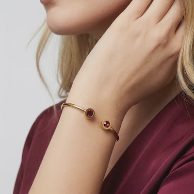Constructed from high-performance Stainless Steel, this cuff bracelet is engineered for daily durability. It is hypoallergenic, nickel-free, and resistant to tarnishing, ensuring the gold-toned finish maintains its brilliance even with constant wear. The open-cuff design allows for a secure yet flexible fit on the wrist.