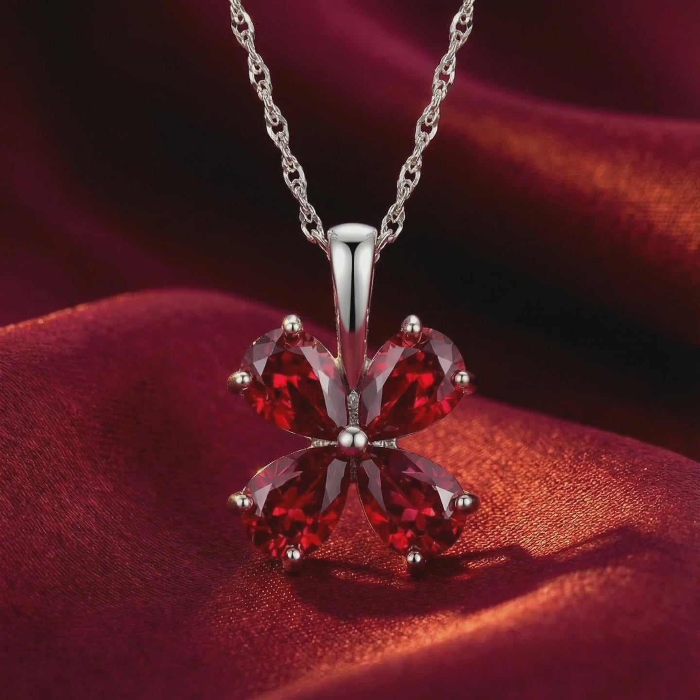 Mined rubies are notoriously inconsistent, often appearing cloudy or brown-tinted. We engineered this July birthstone necklace using Simulated Ruby, color-calibrated to match the coveted "Pigeon Blood" red benchmark. Each petal is precision-cut from A5 Grade material to ensure a deep, vivid saturation and intense fire that nature rarely delivers.