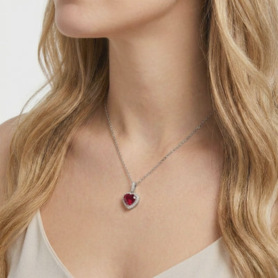 Mined rubies are often cloudy, fractured, and carry brown undertones. This heart necklace features a Simulated Ruby, color-calibrated to match the rare and coveted 'Pigeon Blood' red benchmark. We have engineered the optical clarity nature rarely delivers, ensuring every facet captures and throws light with intense fire.