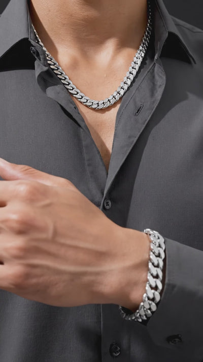 Looking for a jewelry set that's both stylish and durable? The Spartan Cuban Set is crafted from premium 316L stainless steel, the same material used in luxury watches. It's waterproof, sweatproof, and designed to withstand daily wear, so you can wear it with confidence, knowing it won't tarnish or fade. This set provides quality without overpaying, and you can shower in it, swim in it, and forget about it. It's built to last.